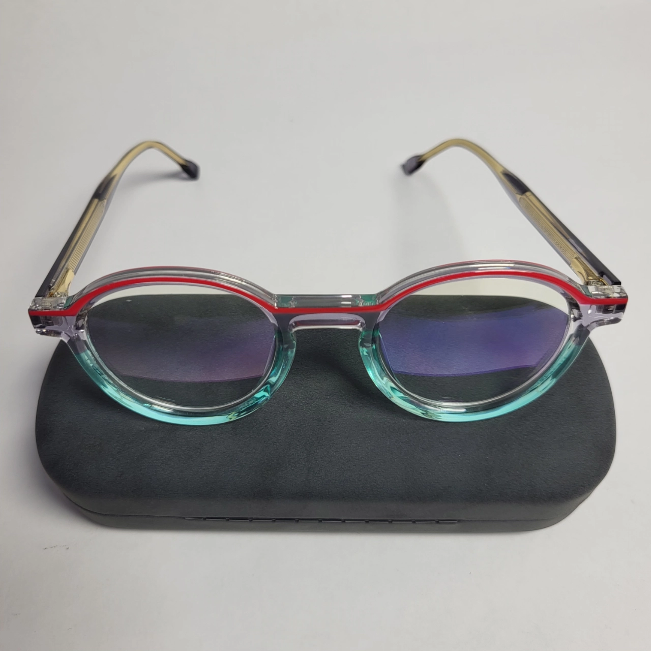 Make a bold statement with these Designer Collection two-tone round acetate glasses, blending vibrant style with everyday comfort for a distinctive look.