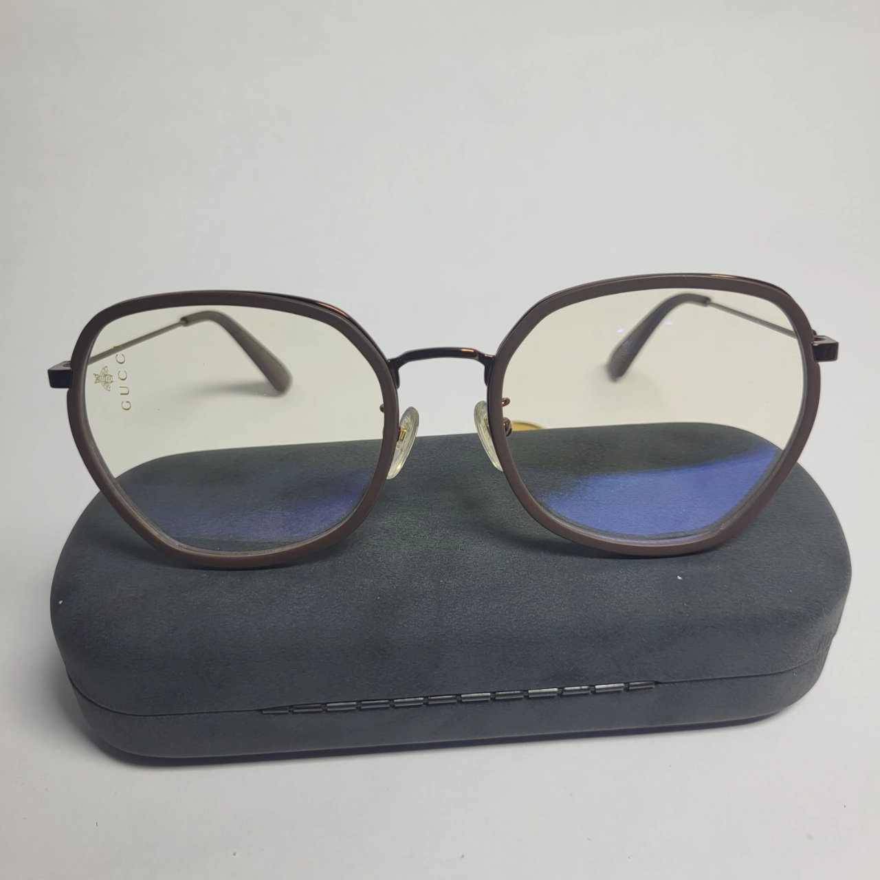 Make a sophisticated statement with the Gucci GG0591 geometric glasses, blending iconic design with modern blue light protection for ultimate style and digital comfort.