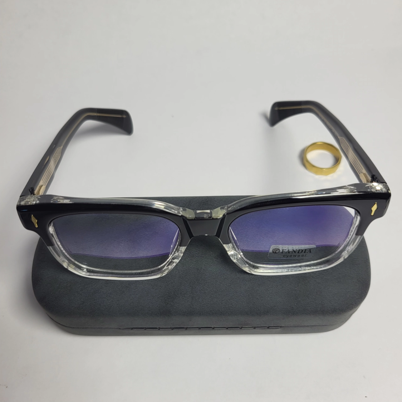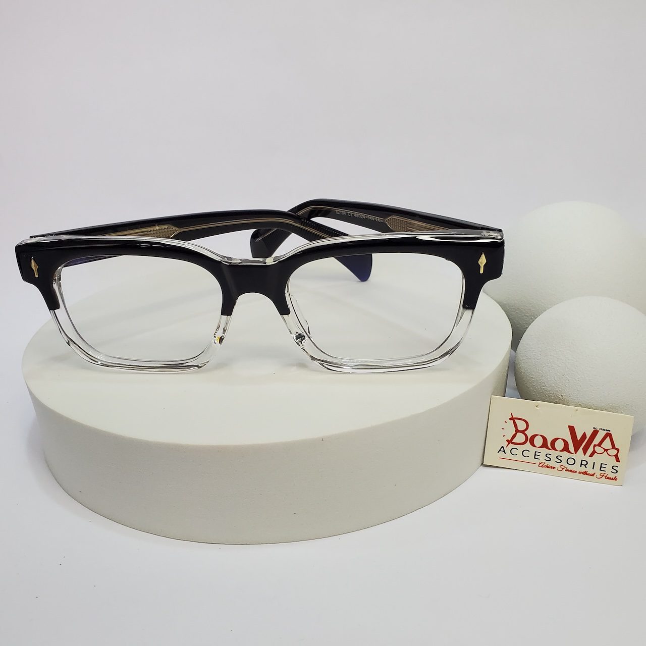 - Premium Two-Tone Acetate Frame: Durable and lightweight, featuring a stylish black top and clear bottom design for a modern aesthetic.