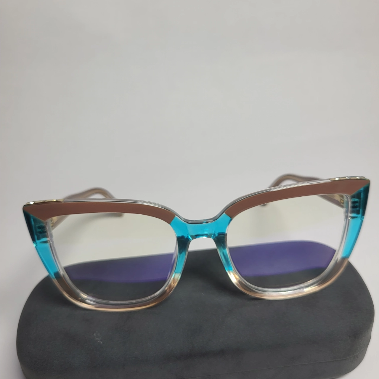 - Chic Cat-Eye Design: The distinctive cat-eye frame, featuring a stylish two-tone blue and brown finish, offers a flattering and fashionable look for any face shape.