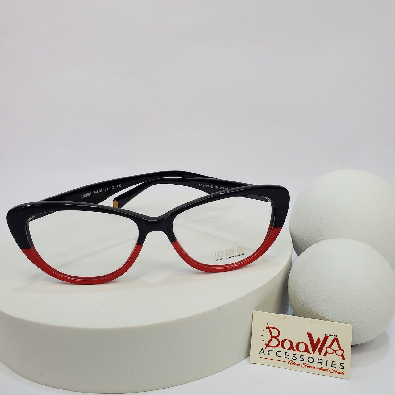 Make a bold statement with the Designer Collection BD1106 Cat-Eye Eyeglasses, featuring a striking black and red two-tone design. These fashion-forward frames offer both style and comfort for the modern Nigerian woman.