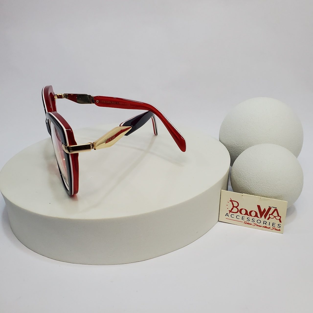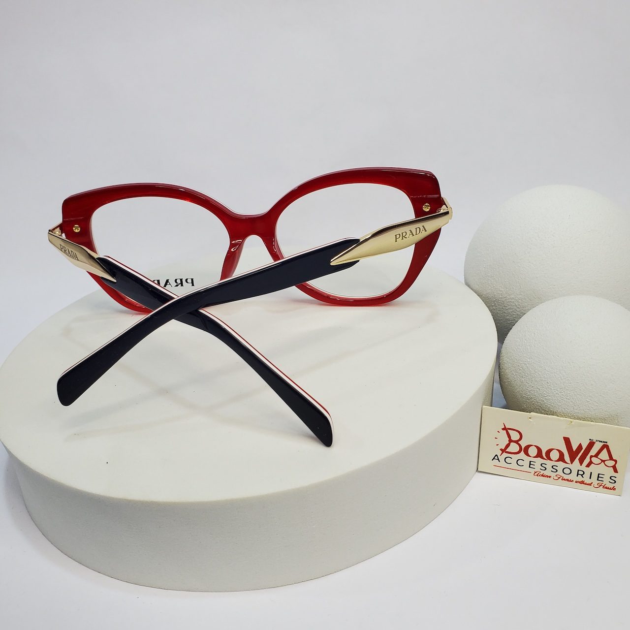 The Prada SP81S Cat-Eye Glasses are incredibly versatile. Pair them with professional attire for a commanding presence in the boardroom, or style them with a chic casual outfit for a weekend brunch in Port Harcourt. Their distinctive design makes them perfect for adding a touch of glamour to traditional wear or elevating contemporary fashion, ensuring you look impeccable whether at a social event in Kaduna or a business meeting in Lagos.