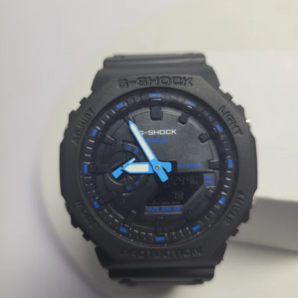 - Robust Black Resin Design: The durable black resin case and band, accented with vibrant blue details, offer both rugged protection and a sleek, modern aesthetic.