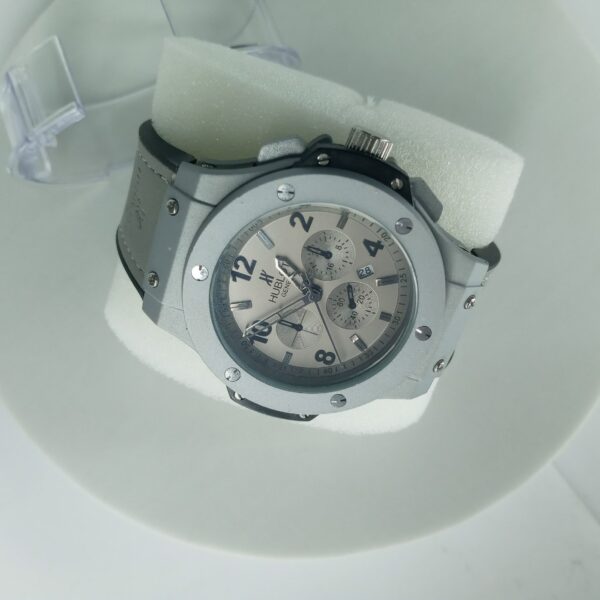 This Hublot Big Bang Chronograph is incredibly versatile. Pair it with a crisp white shirt and tailored trousers for a sharp business look in Abuja, or combine it with a stylish native attire for a traditional event. For a more relaxed vibe, it perfectly complements premium denim and a polo shirt for a weekend outing in Port Harcourt. Its grey and silver tones ensure it integrates seamlessly with a wide range of colors and styles, making it your go-to accessory.