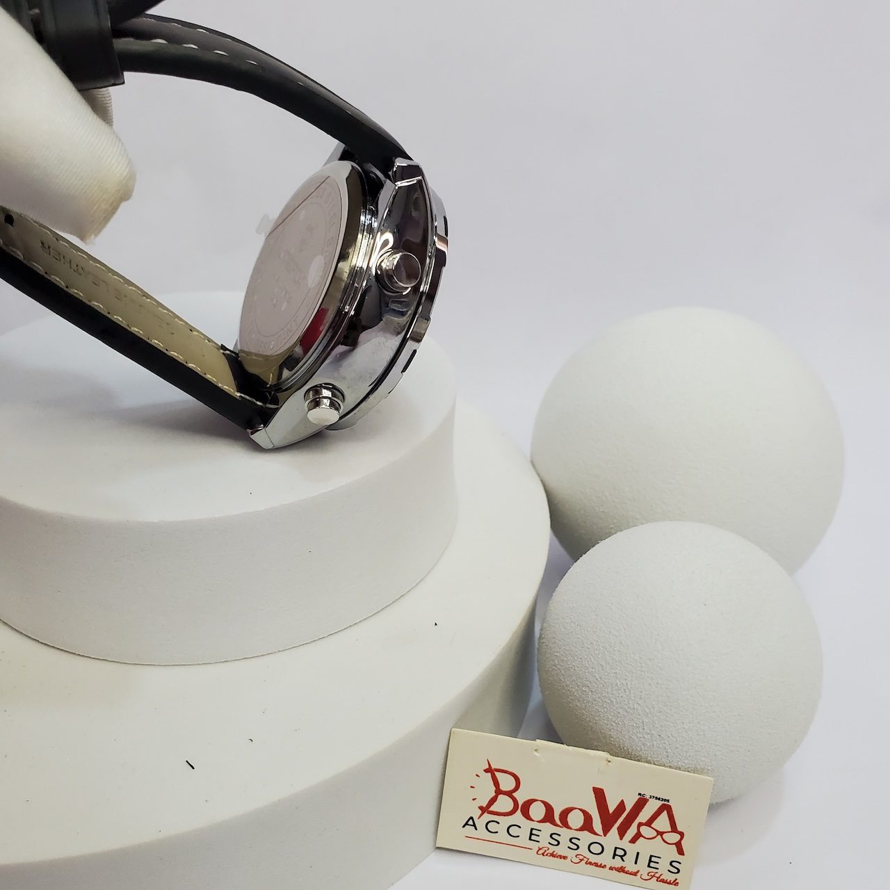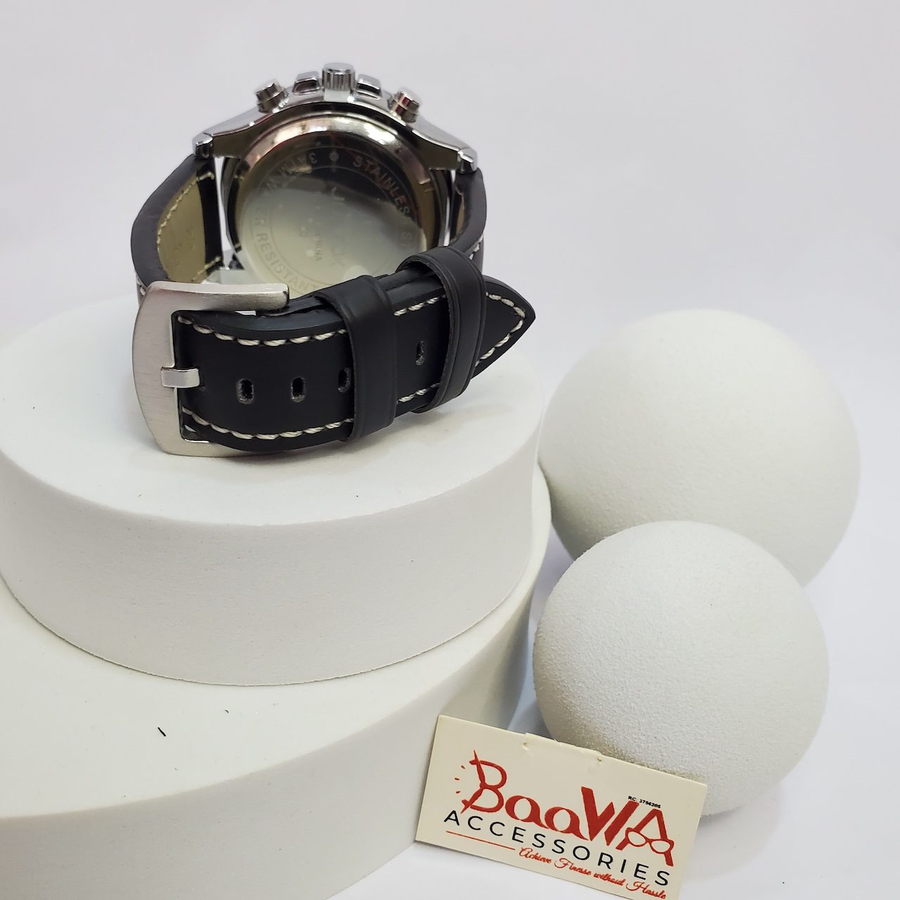 - Comfortable Leather Strap: A high-quality black leather strap with contrasting stitching provides comfort and classic style.
