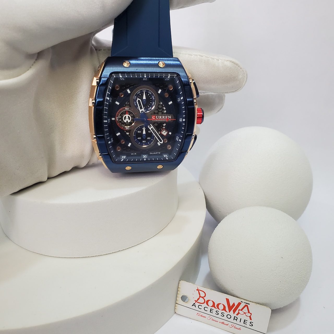 Command attention with the Curren 8442 Men’s Chronograph Quartz Watch, blending robust functionality with a striking blue and gold design. Engineered for durability and precision, it’s the ultimate accessory for the modern Nigerian man.