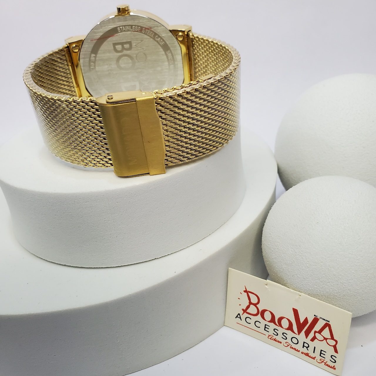- Comfortable Mesh Band: The finely woven stainless steel mesh band in gold provides a sleek look and a comfortable, breathable fit for all-day wear.