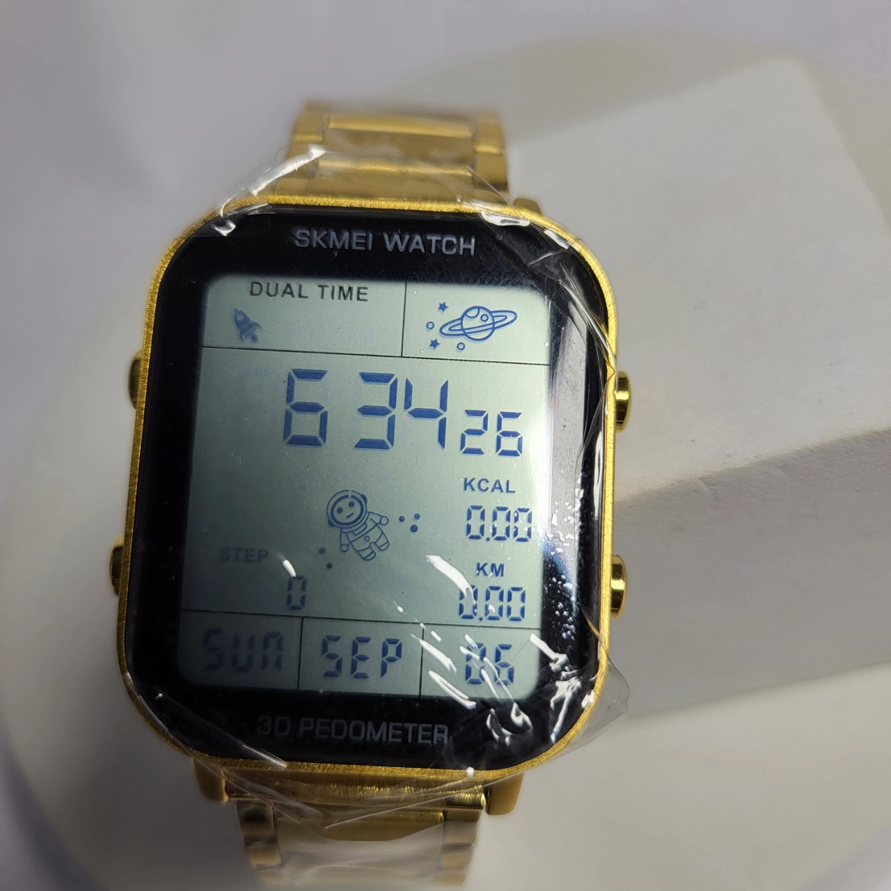 Experience the perfect fusion of modern style and practical functionality with the SKMEI Gold Digital Watch. Designed for the dynamic individual, this timepiece offers advanced features like a 3D pedometer and dual time display, all encased in a striking gold finish that commands attention.