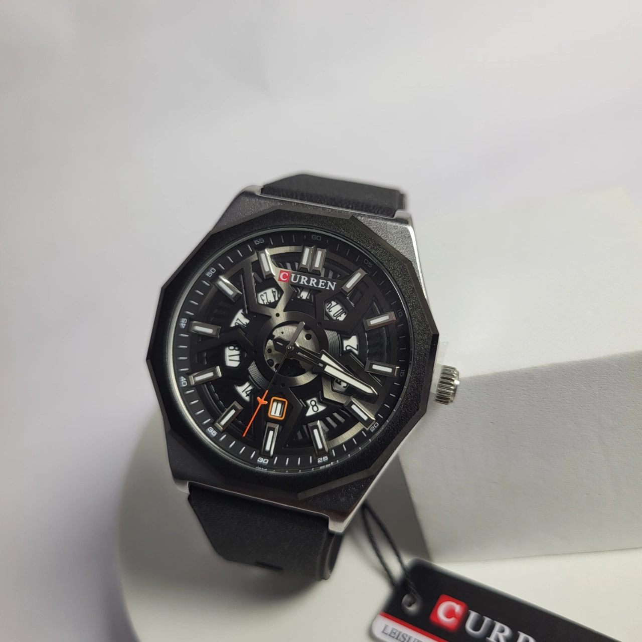 Elevate your style with the Curren 8437 Men’s Octagonal Watch, a robust timepiece featuring a unique design, date display, and water resistance for everyday reliability. Its bold aesthetic and practical features make it an essential accessory for the discerning Nigerian man.