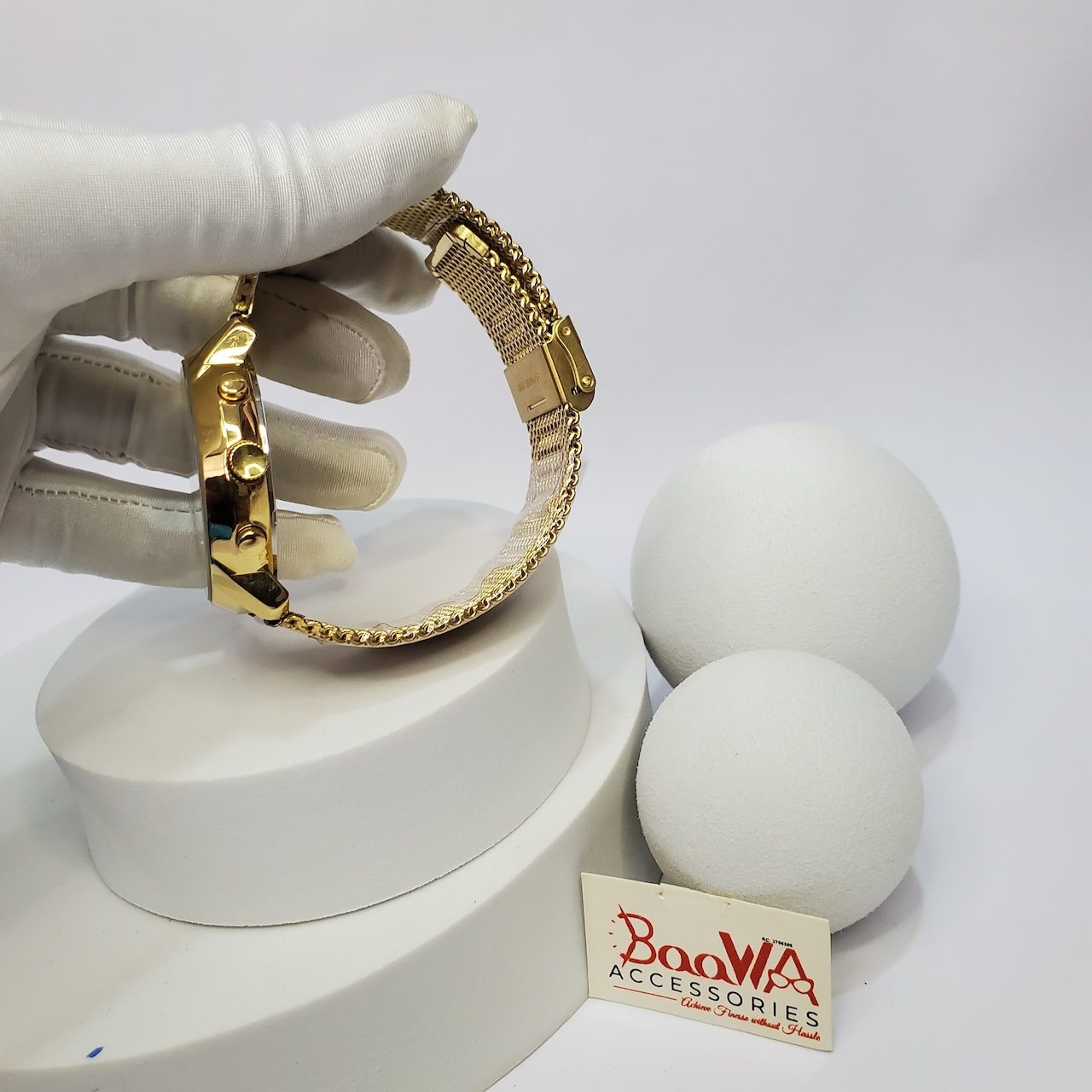 - Elegant Gold Finish: A luxurious gold plating on the case and mesh band provides a sophisticated and eye-catching appeal.
