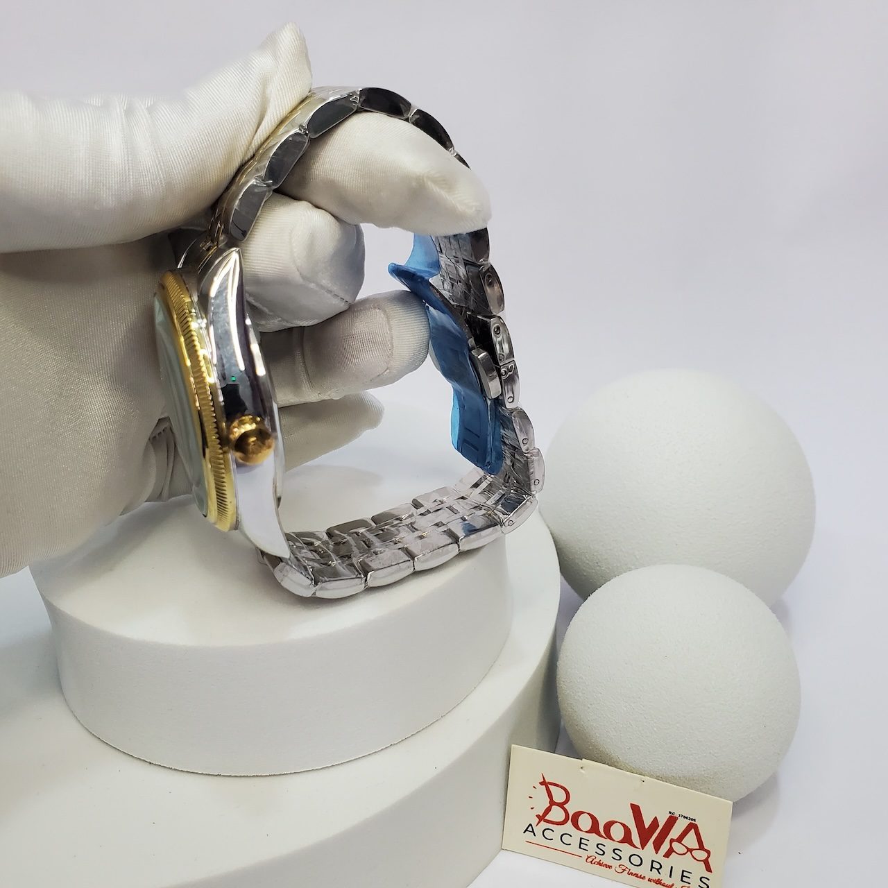 - Iconic Rolex Design: Features the signature Oyster case, fluted gold bezel, and a two-tone Jubilee bracelet for unmistakable luxury.